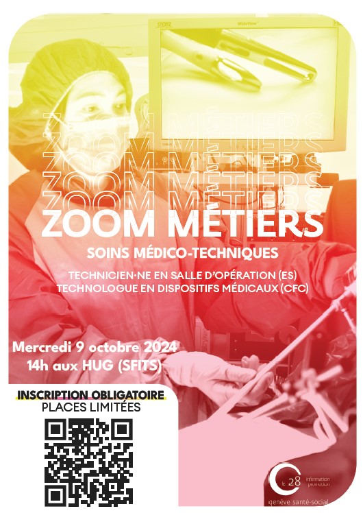 Rejoignez-nous pour partir en immersion dans l’univers du bloc et y découvrir deux métiers palpitants : les technicien·ne·s en salle d’opération TSO (ES) et les technologues en dispositifs médicaux TDM (CFC).Le mercredi 9 octobre prochain, les HUG nous ouvrent les portes des blocs opératoires utilisés pour former leur personnel. De 14h à 16h, vous pourrez participer à des ateliers pratiques …